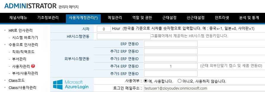 순서2. 개인 사용자환경 설정에서 Microsoft Azure 로그인 계정 등록 Microsoft Azure Login 2018-07-03 신달수 0 댓글 0 430 사용자 정보에서 Azure 정보 등록 이제, 그룹웨어는 로그인하실 필요가 없습니다. 즉, Azure 서비스에 등록되어 있는 사용자 계정으로 로그인하기 때문에, 해당 Azure 사용자 계정이 그룹웨어 사용자가 누구인지 ? 매핑시켜 주는 화면입니다. 좀 더 쉽게 표현하자면, Azure 사용자 계정으로 로그인 성공하면, 그룹웨어 어떤 사용자계정으로 자동 로그인 시킬 것인가 ? 라는 것을 지정하는 화면입니다. [ 그림. 사용자 환경 설정 화면에서 Azure 사용자 계정 등록 ]