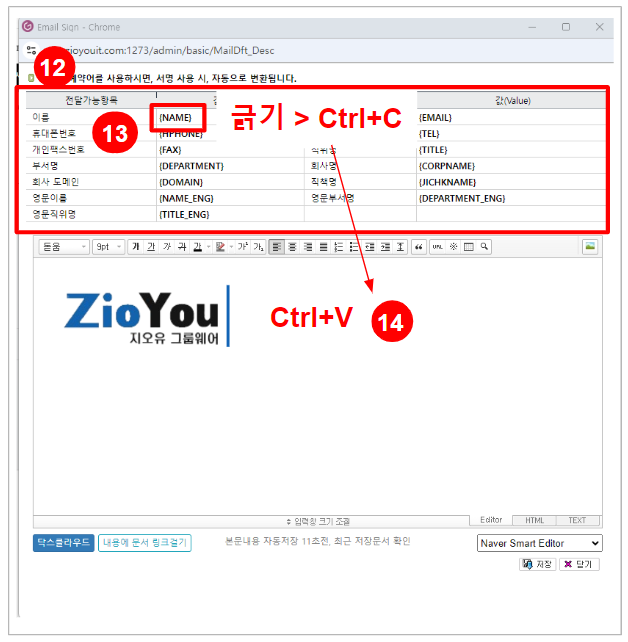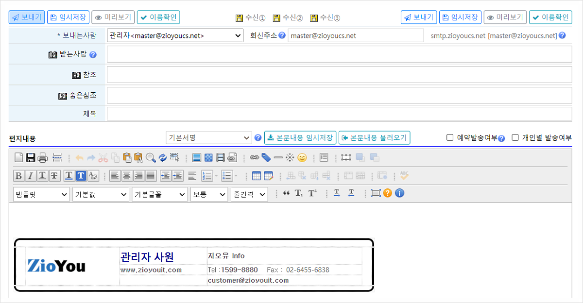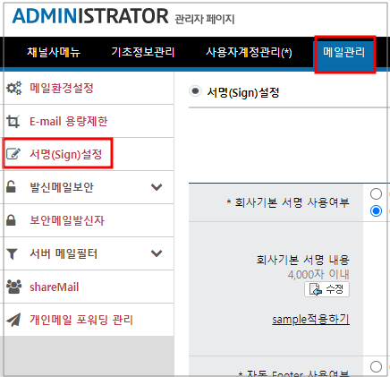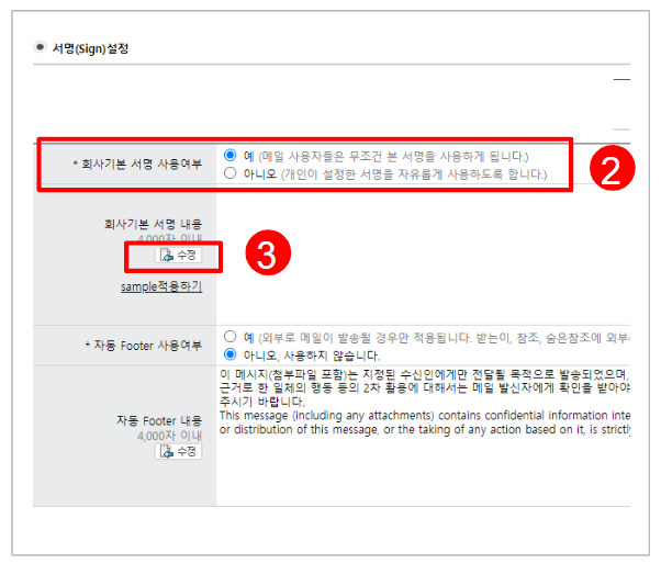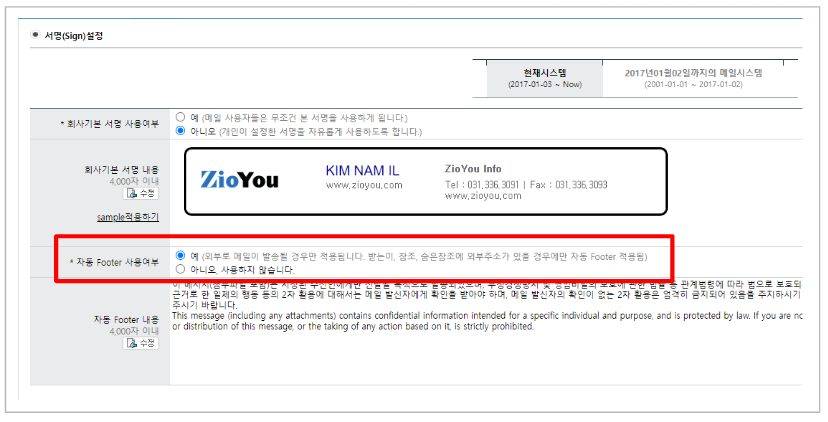 메일에 회사기본서명과 외부발신 메일 보안문구(Footer) 등록하는 방법