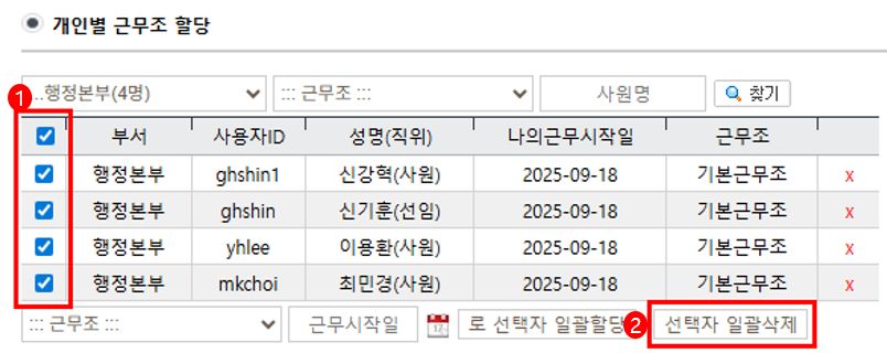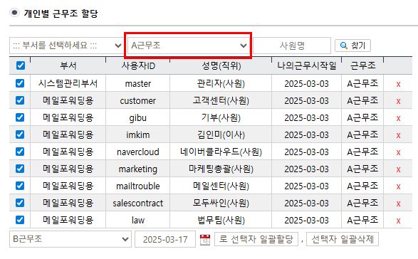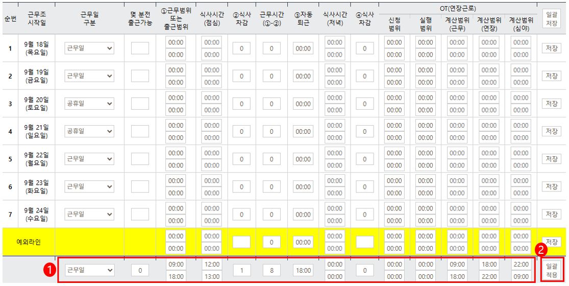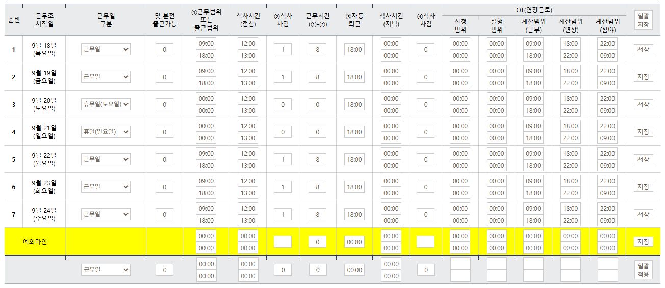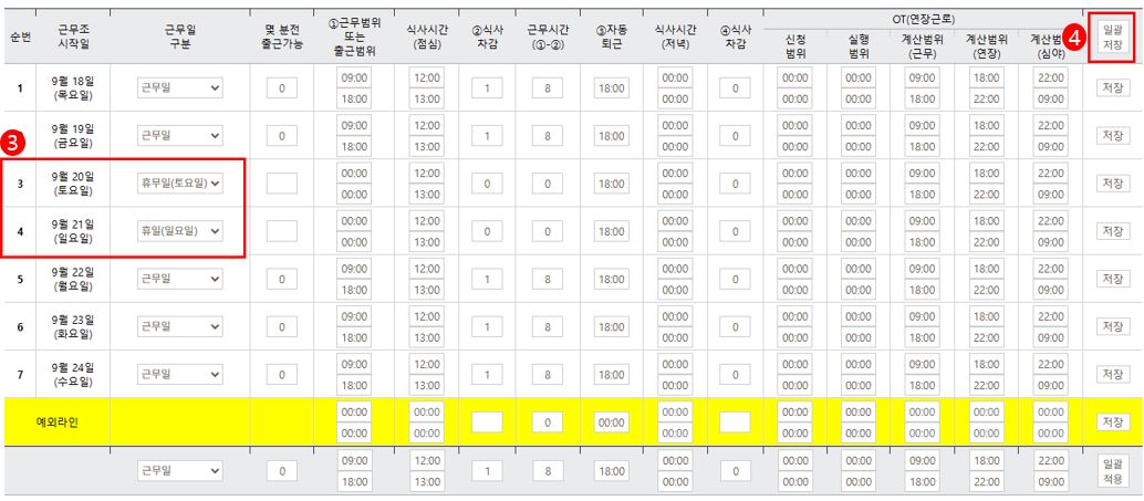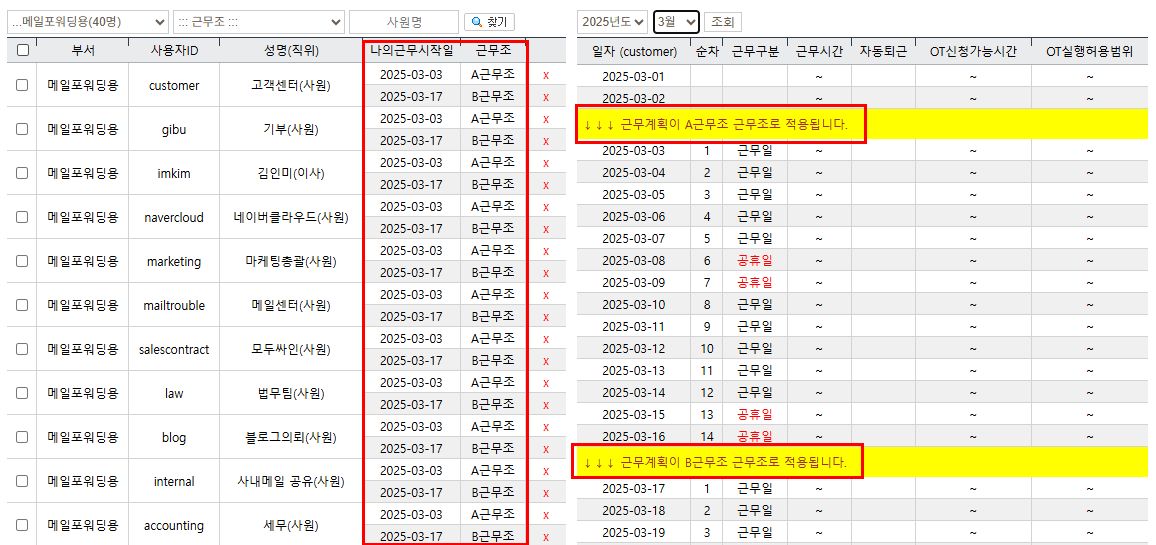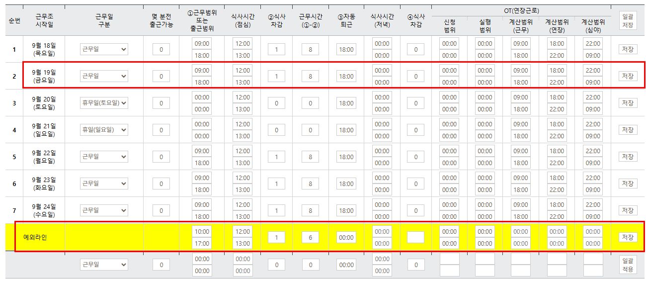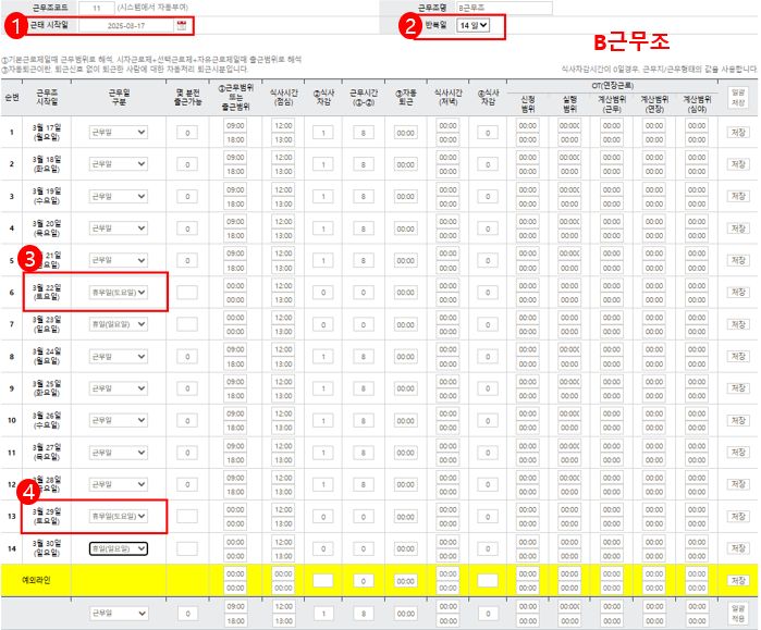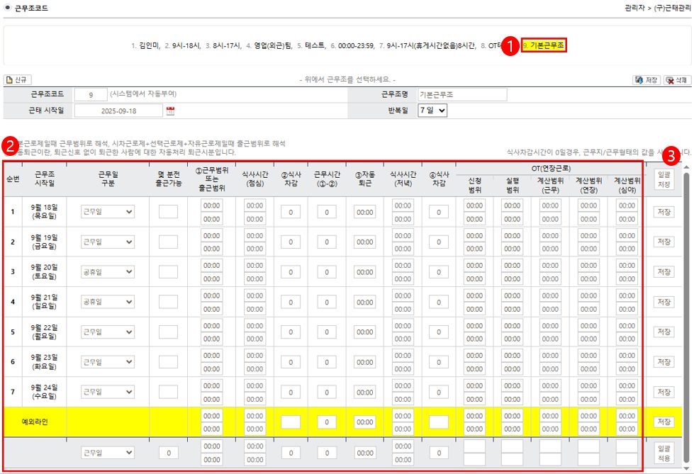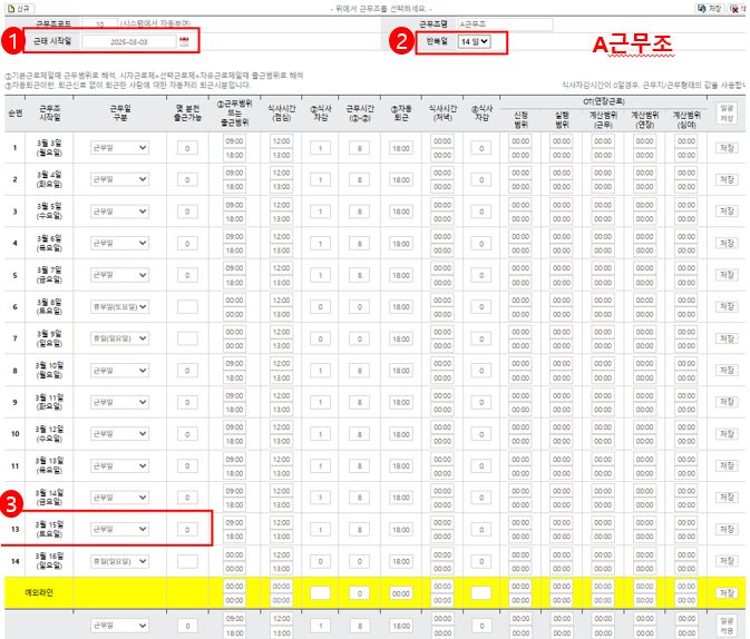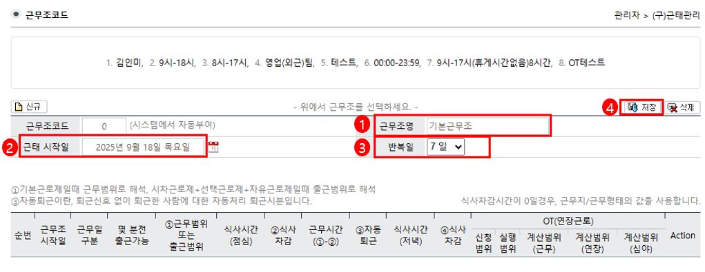 기본적인 근무조 설정방법과 월별로 근무스케줄이 달라질 경우 근무조 설정하는 방법(근태설정)