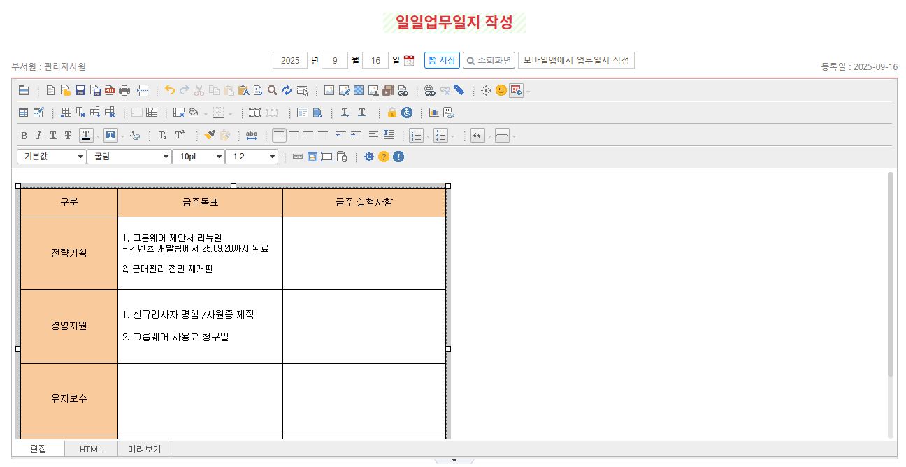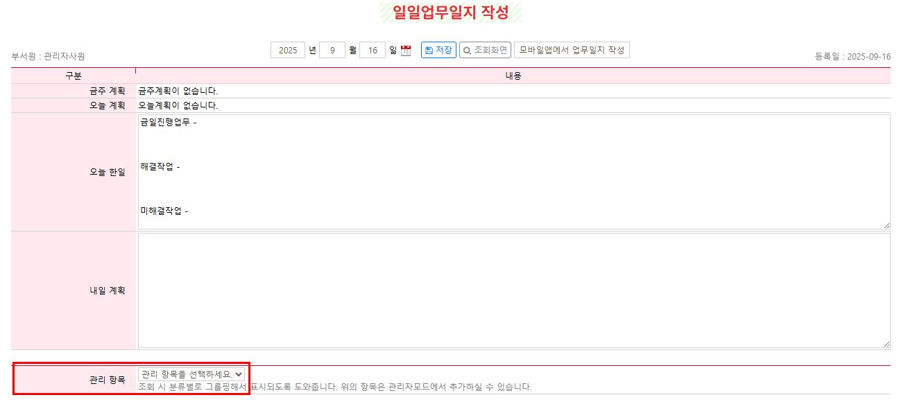관리자페이지에서 업무일지 기능에 대해 설명되어있어 관리자들은 읽어보면 좋을거같습니다.