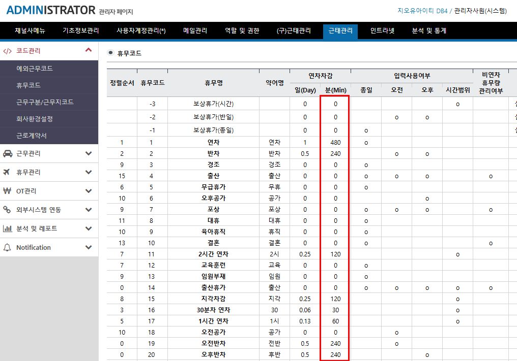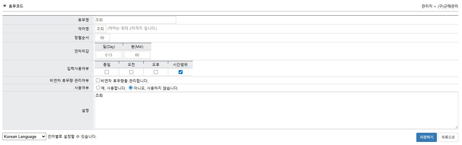 시간(분)단위 연차제도 업데이트 2022년도 4분기 2022-09-28 성경모 0 댓글 0 1670 INTRO 안녕하세요 지오유 그룹웨어 입니다. 최근 많은 회사에서 복지제도에 대한 규정 중, 반반차 제도를 도입하고 계신 곳이 많습니다. 연차, 반반차 제도라고 하면, 1일 8시간 근무자의 연차를 2시간 단위로 선택해서 사용하는 제도 입니다. 다시말해, 1일 8시간 근무시 반차는 1일의 반인 0.5일 반반차는 0.25로 계산을 하여 소숫점 연차로 사용가능 했었습니다. 그런데 최근 연차사용에 있어 유권해석이 확대되어 시간(분)단위 연차제도가 생겼습니다. 이에 대해 업데이트 된 내용을 안내해드리겠습니다. 1. 시간(분)단위 연차 사용에 대한 근거 근로기준법 제60조 (연차 유급휴가) ① 사용자는 1년간 80퍼센트 이상 출근한 근로자에게 15일의 유급휴가를 주어야 한다. 〈개정 2012. 2. 1.〉 ② 사용자는 계속하여 근로한 기간이 1년 미만인 근로자 또는 1년간 80퍼센트 미만 출근한 근로자에게 1개월 개근 시 1일의 유급휴가를 주어야 한다.〈개정 2012. 2. 1.〉 ③ 삭제 <2017. 11.28.〉 ④ 사용자는 3년 이상 계속하여 근로한 근로자에게는 제 1항에 따른 휴가에 최초 1년을 초과하는 계속 근로 연수 매 2년에 대하여 1일을 가산한 유급휴가를 주어야 한다. 이 경우 가산휴가를 포함한 총 휴가 일수는 25일을 한도로 한다. [참고 유권해석] 근기 68207-934, 2003-07-23 ...연·월차유급휴가는 근로제공의 의무를 면제하는 것이며, 원칙적으로 "일"단위로 부여해야 하나 당사자간 합의로 "일"의 일부를 분할하여 부여할수도 있을 것임... [참고 유권해석] 근로기준정책과-2431,2017-04-07 ...질의는 근로자가 청구할 경우 연차유급휴가를 시간단위로 사용할 수 있는지에 대하 것으로 보이는 바, 연차유급휴가는 근로제공의 의무를 면제하는 것이며 원칙적으로 "일" 단위로 부여해야 하나 당사자 간 합의로 “일"의 일부를 분할하여 부여할 수도 있을 것입니다... 2. 그룹웨어 변경사항 1) 휴가신청서 상신 화면 변경 전 변경 후 연차 시간(분)별 사용을 위해, 표기 단위가 일+소수점 형태에서, 'DHM(Day, Hour, Munute)' 형태로 변경되었습니다. 급증하는 조퇴, 외출 건의 시간(분)별 사용을 위해 소수점 사용으로는 제약 사항이 발생하게되어 개선되었습니다. 대표적인 사안으로 반차 사용시 '0.5 차감' 이라는 표식을 대체하여, 4h(4시간) 으로 표기됩니다. 반차의 경우, 회사별 점심시간 기준에 따라, '오전반차는 손해다 오후 반차가 더 길다..', '둘다 어차피 0.5로 차감될거 같음 오후 반차로 쉬는게 낫다.' 등의 폐해도 줄이기 위해, 시간(분)단위 연차로 규칙을 변경하시는 경우가 가장 많습니다. 외출, 조퇴 등의 시간범위 규칙을 정해두고 차감되게끔 운용도 가능합니다. 조퇴 개념을 없애고, 관리 편의성을 위해 명칭은 외출과 조퇴로 유지하되, 실질적인 시간(분) 단위 연차차감을 통해 처리하시는 경우가 많습니다. 세팅 방법은 아래 관리자 페이지 화면을 통해 안내드리겠습니다. 2) 관리자 페이지 52시간근태 - 휴무코드에 '분(Min)' 열이 새롭게 추가되었습니다. 기존 활용하고 계신 설정값들은 모두 '일(Day)' 에 그대로 입력되어 있고, 그 값에 맞게끔 분 단위로 치환된 데이터가 자동 입력되어 있습니다. 가장 많이 사용하시는 '연차를 소진하는 조퇴'의 설정 방법 예시를 안내드립니다. 조퇴를 클릭하셔서 들어가시면 연차차감시간 설정과 비연차 휴무량 관리, 해당 휴무 사용여부를 설정할 수 있습니다. 설정이 되었다면 상기 캡쳐와 같이 사용자들이 조퇴를 진행하고자 할때, 관리자가 제한한 시간범위로 동작하는 것을 확인 하실 수 있습니다. (15:30 선택 시, 18:00 자동선택) OUTRO 근로기준법에서는 단시간 근로자등 예외사유를 제외하고는 연차휴가를 '일' 단위로 부여하도록 명시하고 있습니다. 원칙적으로는 일 단위로 부여/정산을 하는 것이 근로기준법의 취지에 맞습니다. 하지만, 분/시간 단위 연차휴가 사용을 제한한 바는 없고, 근로자에게 보다 넓은 선택권이 부여되는 것으로 고용노동부의 해석이 부재한 상태입니다. 이는 회사의 규정에 따라 운영함이 맞으며 보다 넓은 선택 방식으로 업데이트 된 내용입니다. 이에 대해 노무관리의 안정성을 위해 연차휴가를 어떤 형태로 관리, 근로자에게 보상하는 가는 내부 취업 규칙과 사내 규정에 구체적으로 정해두는 것이 바람직 합니다.